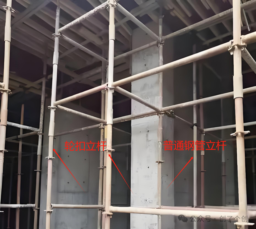 当今绝大多数施工现场模板支架已采用盘扣式脚手架形式,但这个现象一直延续到现在。那么两种材质相同、但搭设体系不同的模板支架形式共存时,立杆算不算混搭?