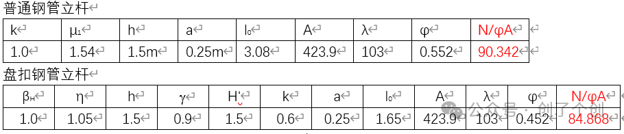 以实例计算来进行二者的比较。轴向力N=16.261KN,步距1.5m,顶层步距1.5m,均不考虑风荷载的作用。同样的支撑条件下,实例计算如下: