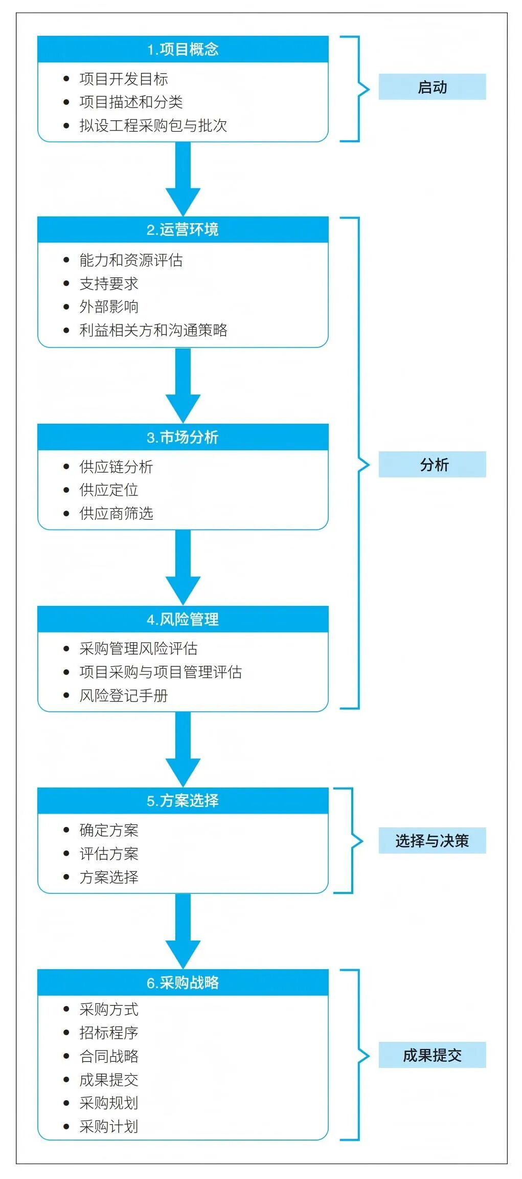 分析阶段是整个策划管理工作的重点,需对项目实施环境、市场状况与供应链以及相关风险因素开展充分的调研和评估,目的是为采购策略的选择与决策提供信息支撑。