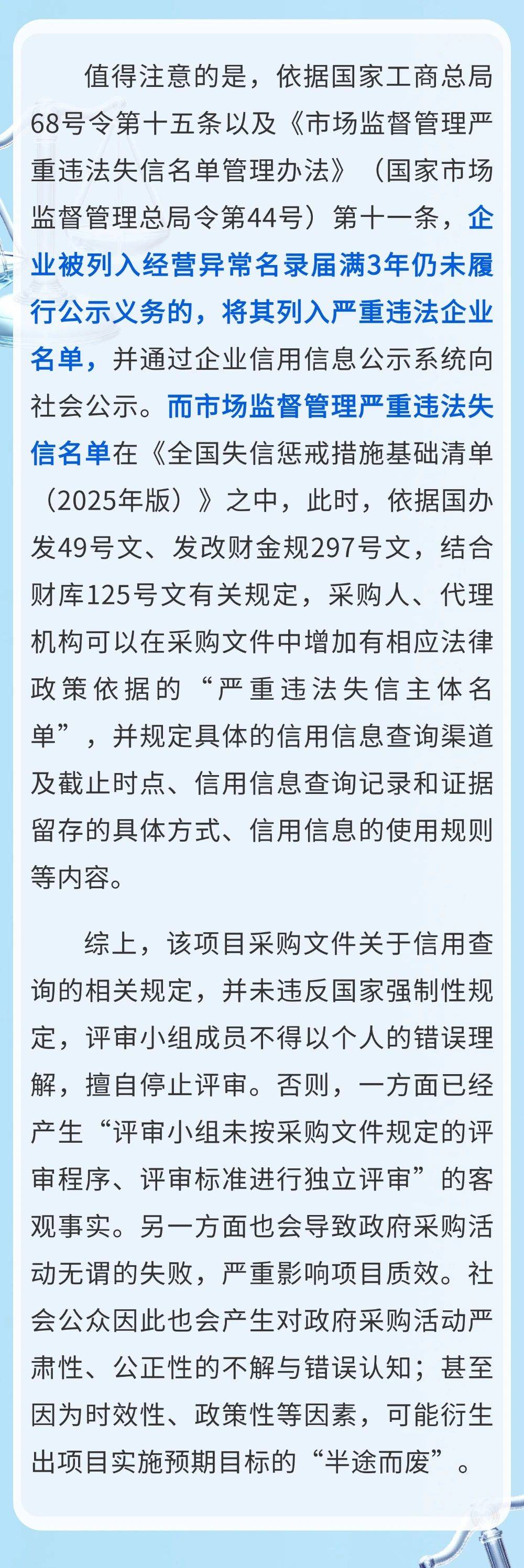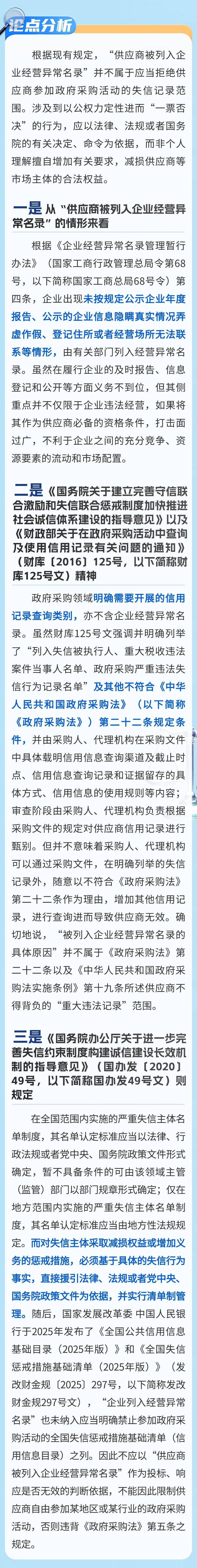 在该案例中,“供应商被列入经营异常名录”不能作为投标、响应是否无效的判断依据。