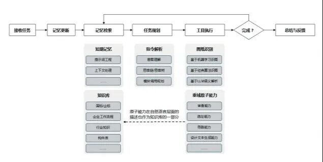 再如,建筑工程设计工具自身逐渐往智能化方向发展,有软件开发厂家研究开发出实现建筑、结构、给排水、暖通、电气五大专业的施工图自动化设计智能体。系统可以把设计师对于设计任务的描述拆解成可供智能体执行的工作流;工作包括构件图元的获取、构件属性获取,甚至是针对构件输入进行业务计算与生成式设计。经过微调的多模态大模型还可准确实现包括二维图纸、BIM模型、项目文本等多模态工程数据的结构化提取,大大扩展了智能体的业务边界,使智能体顺畅嵌入设计师日常的设计流程中。