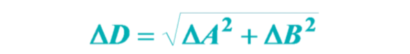3)用尺子,量出在X、Y墙面的偏移值ΔA、ΔB,然后用矢量相加的方法,计算出该建筑物的总偏移值ΔD,即: