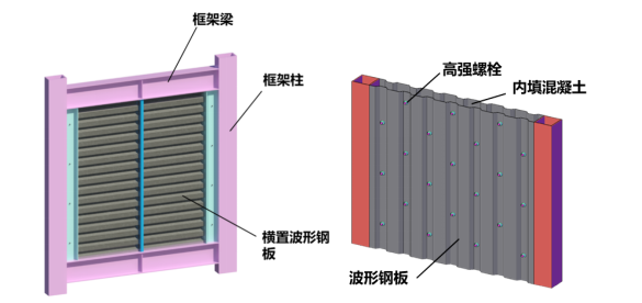 内嵌波形钢板延性墙和波形钢板混凝土组合墙(图源:杭州市建设行业科技服务站)